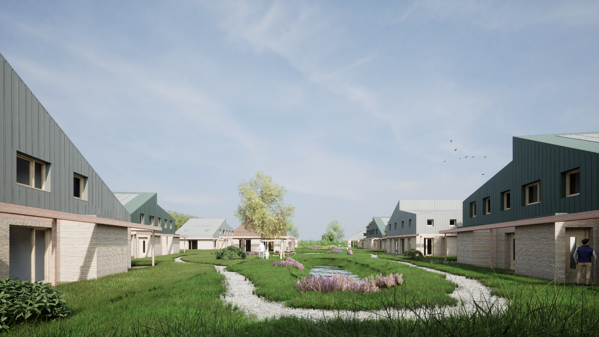 We willen iedereen op ons erf meer bieden dan alleen het kerngezin of eigen huishouden. Je eigen huis, je eigen tuin, maar ook een gezamenlijk gebouw en een gemeenschappelijke tuin waar we elkaar kunnen treffen. Leven in gezamenlijkheid en toch je eigen privacy.